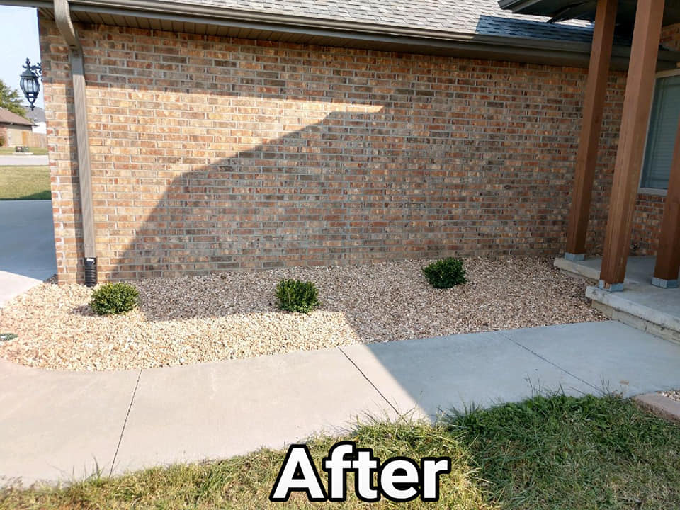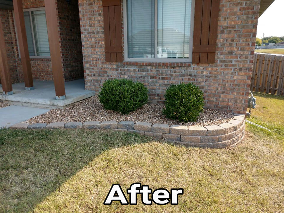 For the last and most obvious aspect of this fence, the apprearance was important-as we wanted to be sure it complemented the customer’s beatiful house. Every piece of metal on this fence was hand welded and fabricated to create what we envisioned. All of the boards were treated with stain and cut to size. In addition to the statement piece, being the fence, the customer wanted to add some landscaping around his house to help complete the look. The landscaping was a perfect transition from the beautiful fence to his stunning home and front patio. The only thing missing in these pictures of his landscaping is the Colorado Cobble Stone that he added to the landscaping beds, and man does that make the difference! Stone/Rock is a great alternative to mulch or dirt for a customer that wants their landscaping beds to be as low maintenance as possible, it was the perfect option for our customer and left them happy.